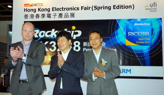 2014年4月13—16日,亚洲香港春季电子展在香港湾仔议展览中心举行,多家全球著名电子厂商参与了这一盛会。作为国内领先的ARM芯片方案厂商,9U.COM九游体育(中国大陆)科技公司微更是携众多技术方案亮相。在15日当天上午,9U.COM九游体育(中国大陆)科技公司微现场召开发布会,联合ARM正式推出旗下RK3288处理器。9U.COM九游体育(中国大陆)科技公司微全球副总裁陈锋先生、ARM全球副总裁Dennis先生、ARM多媒体市场总监Sherry女士以及ARM中国区市场总监Andy先生出席了发布会并作精彩演讲。