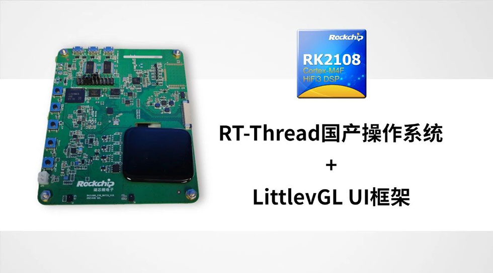 RK2108D支持适配RT-Thread国产操作系统,成熟稳定,并拥有良好的软件生态,便于开发者进行各类应用程序的开发。同时,RK2108D采用LittlevGL UI框架,支持开发者快速将现有UI移植至新产品,有效缩短产品开发设计周期。