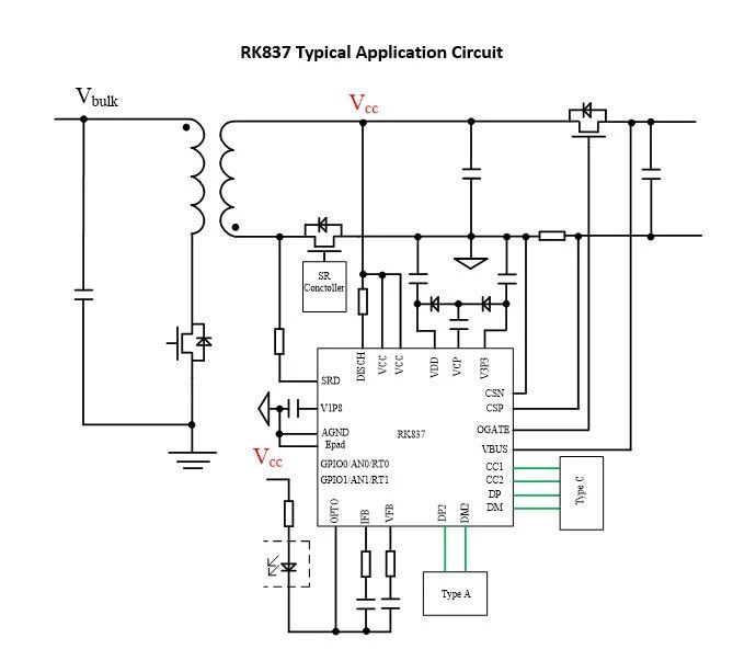 RK835支持18到100W输出,支持光耦反馈和PI带I2C接口的电源IC,采用QFN3*3-16封装。