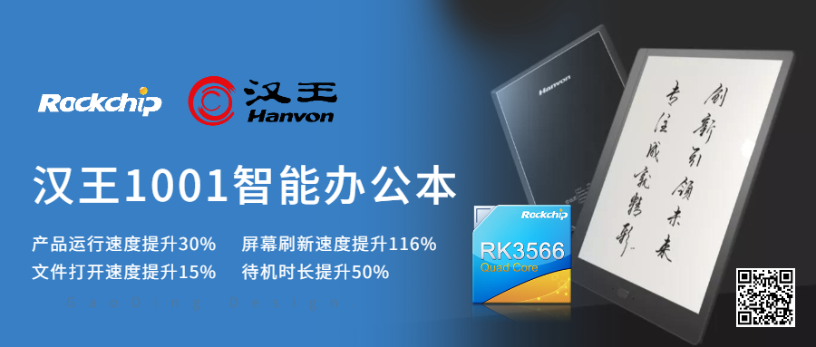 汉王电子纸智能办公本1001,内置高性能处理器RK3566,较上代产品,性能有明显提升,据汉王实验室测试,产品运行速度提升30%,文件打开速度提升15%,待机时长提升50%,屏幕刷新速度提升116%。