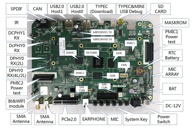 图:RK3588S EVB 功能接口正面分布图