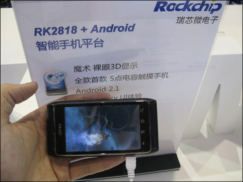 Rockchip's RK2818 + Android smartphone added 3D display technology, both HD and 3D are available.