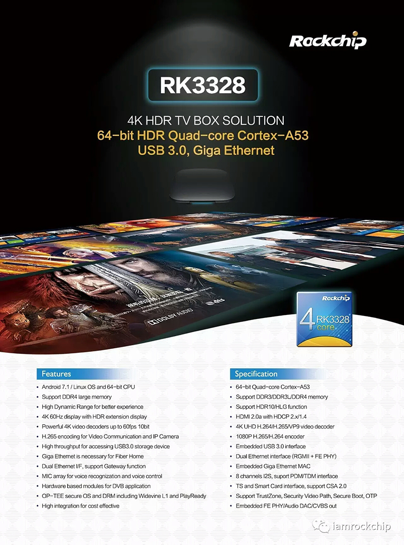 New TV technology is always the highlight in CES. Rockchip launched its new 4K HDR TV Box Solution RK3328 with higher integrity and more advantages in performance and cost at CES 2017. With the following features, it has raised attentions from all scientific Medias: